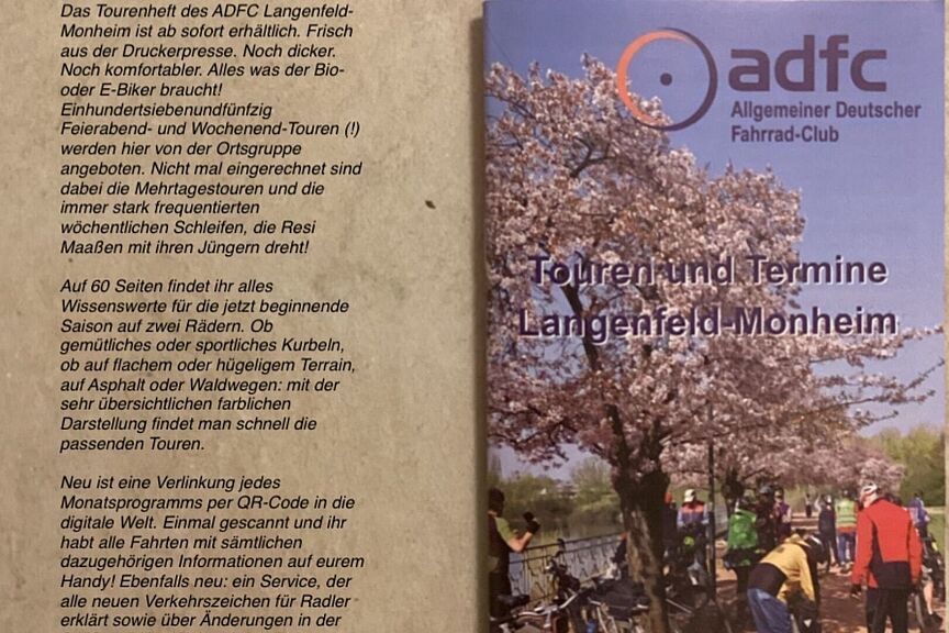 Das Tourenheft des ADFC Langenfeld-Monheim ist ab sofort erhältlich