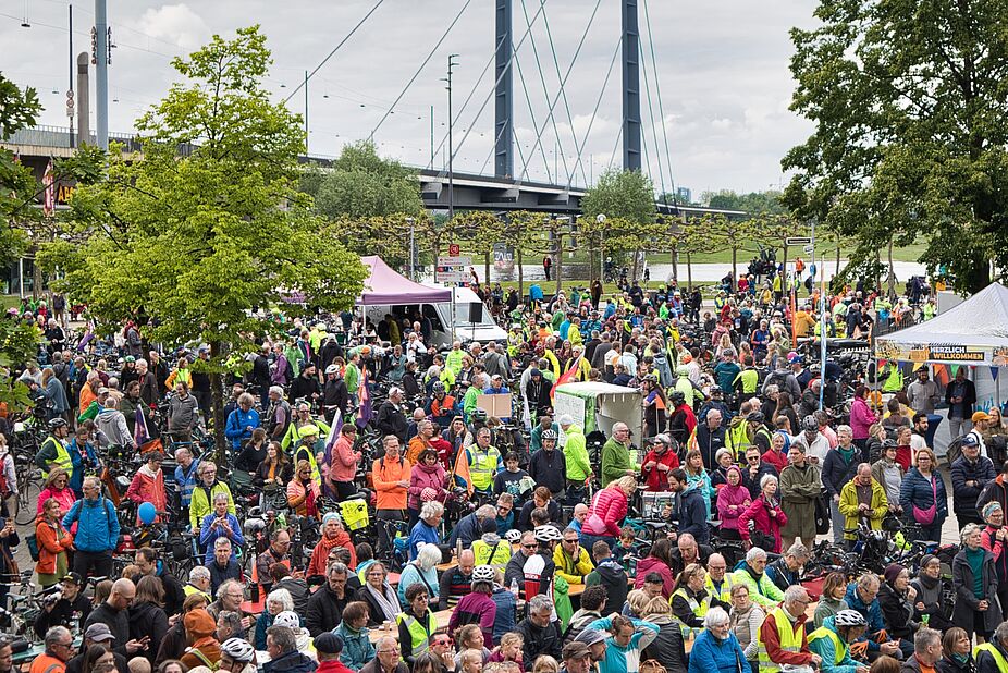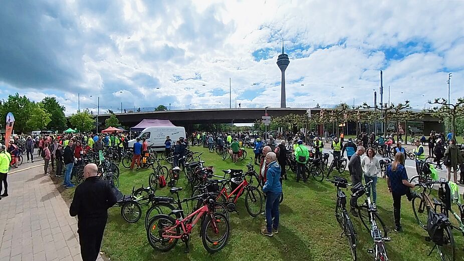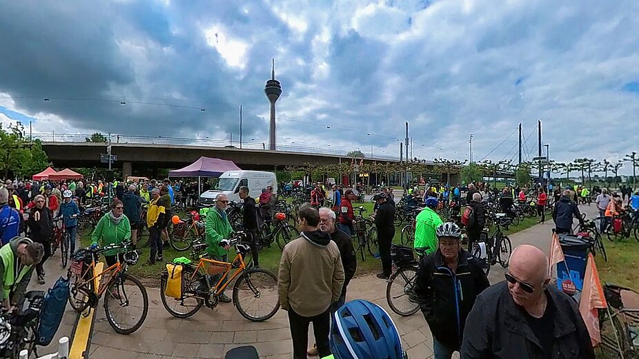 Gut gelaunt und mit viel Spaß versammelte sich die Ortsgruppe Langenfeld, bei Gott sei Dank trockenem Wetter, auf dem Vorplatz der Langenfelder Stadthalle. Zu diesem Treffpunkt stießen noch weitere ADFC-Gruppen aus Köln, Bonn und aus dem Bergischen-Land hinzu. Eskortiert wurde die Demo durch die Polizei, die uns die Straßen freihielt. Weiter ging es zur nächsten Sammelstelle nach Düsseldorf zum Schloss-Benrath. Dort schlossen sich noch weitere Ortsgruppen an. Mittlerweile auf mehrere hunderte begeisterte Fahrrad/Liegeradfahrer angewachsen fuhren wir, nach einem kurzen Stopp, in Richtung Stadtmitte. Am Zielort, auf dem Vorplatz des Düsseldorfer Landtages angekommen, versammelten sich dort tausende von Radlern, die hier eindringlich ein Umdenken in der Verkehrspolitik der Städte forderten. Auch der Klimawandel und der öffentliche Nahverkehr waren wichtige Themen bei dieser Aktion. Die Sonne schien, für das leibliche Wohl wurde auch gesorgt und die Stimmung war dementsprechend phänomenal. Am Ende der Kundgebung folgte noch eine 17 km lange Rundfahrt durch die Düsseldorfer Innenstadt, um dort auch bei den Bürgern für mehr Akzeptanz und Rücksichtnahme im Straßenverkehr zu werben.