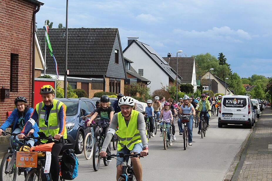 Unterstützt von der Bettine-von-Arnim-Gesamtschule (BvA) trafen sich die begeisterten Radlerinnen und Radler am Nachmittag auf dem Schulhof. Von dort ging es auf einer gemütlichen Rundtour über 10 km durch die Straßen von Langenfeld. ADFC-Mitglieder, weitere Helfer und die Polizei sicherten den Streckenverlauf und ermöglichten den Kindern die sichere Fahrt auf der Fahrbahn.