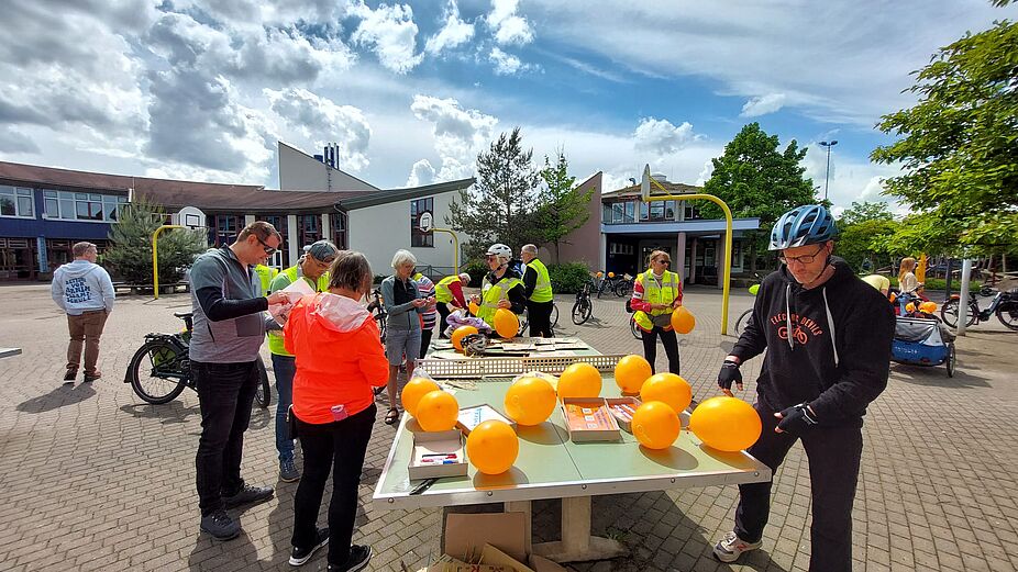 Im Anschluss an die Tour luden der ADFC und die BvA zum Rahmenprogramm auf den Schulhof ein. Hier hatten die Schülerinnen und Schüler selbst Stände und Spiele aufgebaut und versorgten die Teilnehmer mit Speisen und Getränken. Außerdem bot der ADFC eine Fahrradcodieraktion an, um den Schutz vor Diebstahl zu erhöhen.